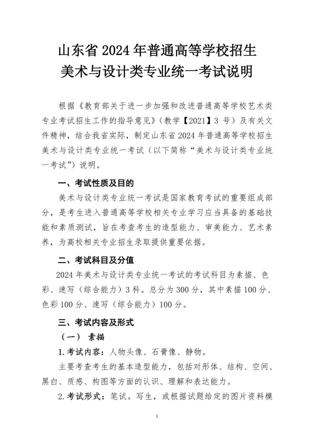 據山東省招生考試院發布的通知安排,2024年普通高校招生藝術類專業全省統一考試(筆試)將于2023年12月17日舉行,2023年12月下旬舉行2024年普通高校招生藝術類專業全省統一考試(現場)。