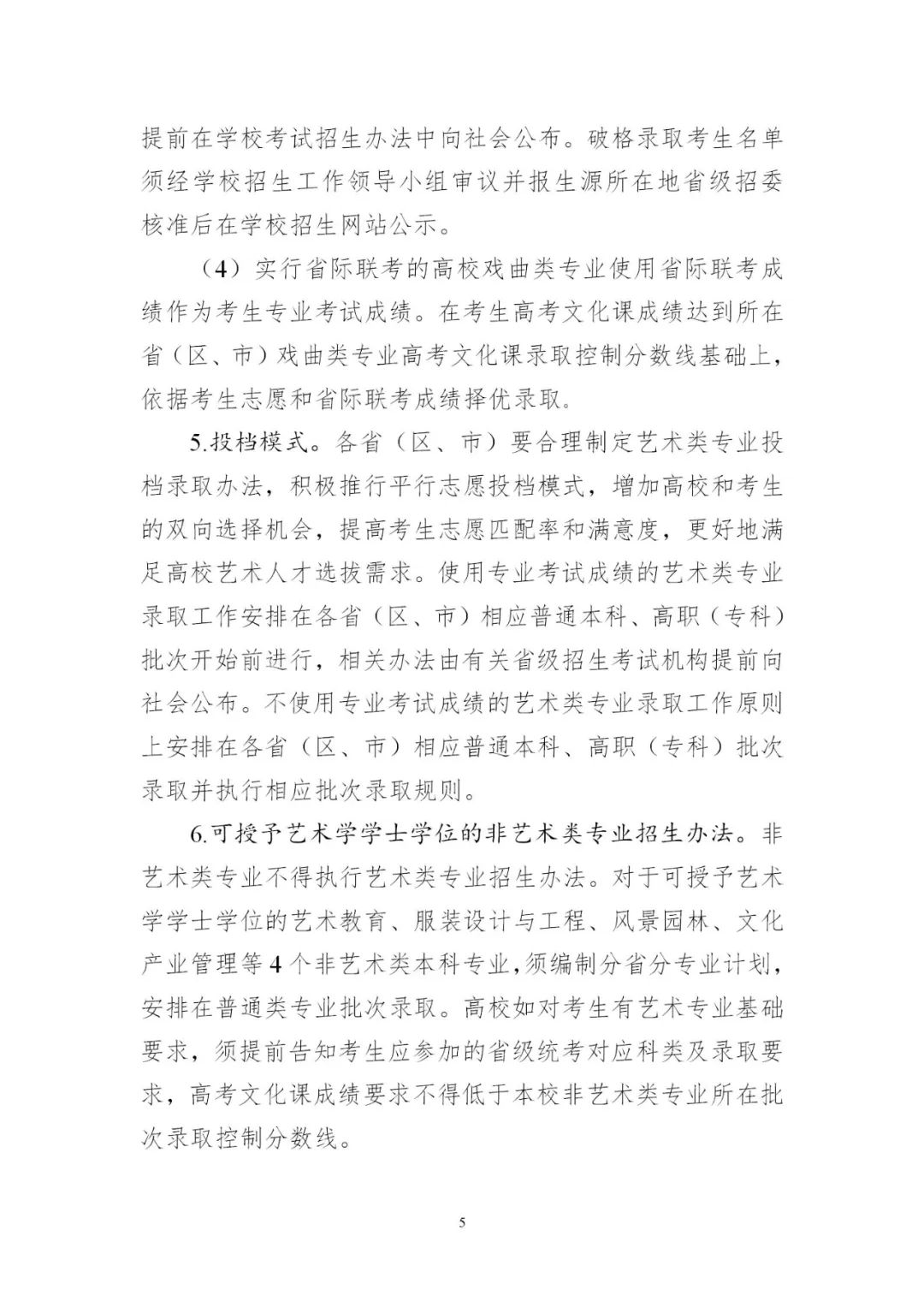 高校藝術類專業、高水平運動隊、保送生招生工作嚴格按照本通知要求執行。教育部授權各地各高校組織的單獨招生、強基計劃、高校專項、綜合評價、拔尖創新人才選拔培養等考試招生工作參照執行。本通知未盡事宜按照當年有關招生工作規定執行。請各省級教育行政部門將本通知轉發至本行政區域內有關高校。