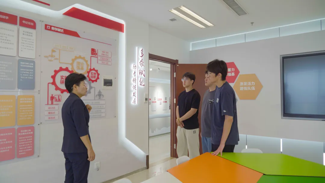 在大智黨委書記王現芹的帶領下,學生們參觀了在大智總部興建的歷下區新興領域黨建先鋒學院,通過實地觀摩切身感受了歷下區新興領域黨建的蓬勃發展。隨后,雙方舉行座談交流會。座談會上,同學們圍繞"大智黨建如何發揮實效作用"、"新興領域黨建當前存在的問題"、"新興領域黨建如何創新"等問題踴躍提問,王現芹書記結合具體案例一一作答。現場互動熱烈,學生們表示,這種"走出課堂、走進企業"的實踐學習方式,使大家對黨建理論的理解更加深入、具體,增強了對新時代黨建工作的感性認識和理性思考。