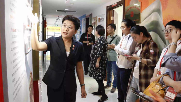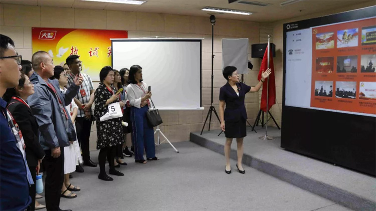 考察中,王現(xiàn)芹帶領(lǐng)大家參觀了大智教育集團(tuán)黨建陣地,介紹了大智“智惠黨建一三九”工作模式、所開(kāi)展的黨建系列活動(dòng)、大智“一帶一促”群團(tuán)建設(shè)理念和“智惠+”群團(tuán)建設(shè)模式。