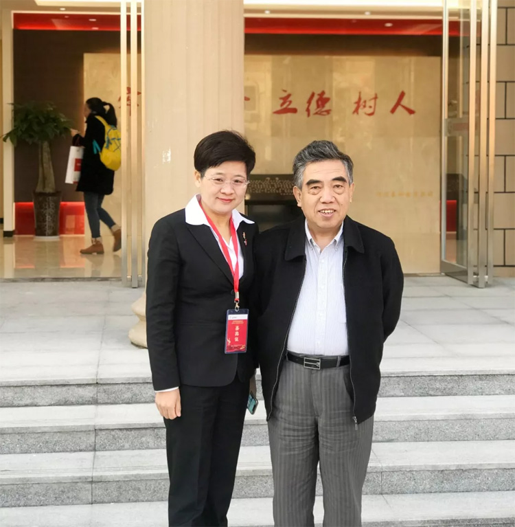 (王現(xiàn)芹與中國(guó)民辦教育協(xié)會(huì)會(huì)長(zhǎng)王佐書(shū)合影)