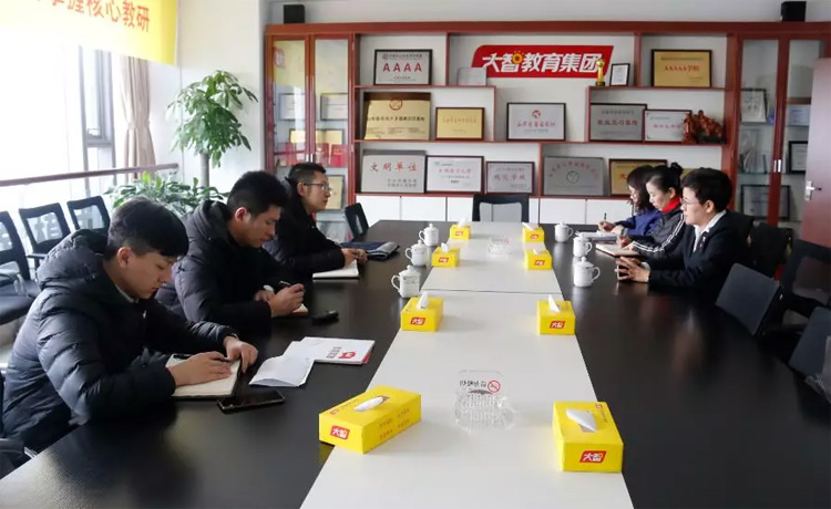 02月20日,濟南市章丘區雙山街道城東工業園黨群服務中心、龍泉國際廣場黨群服務中心一行在歷下區解放路街道歷山路社區黨委書記董繼紅、副書記楊霄霞陪同下,第二次到大智調研交流黨群工作。大智教育集團黨委書記王現芹、黨委委員常廣成熱情接待。