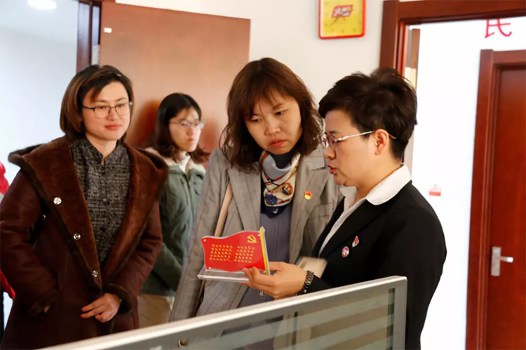 03月11日,濟南市市中區大觀園街道黨工委副書記王曄帶領轄區社區書記及“兩新”組織黨建負責人到大智考察交流黨建工作。大智控股集團黨委書記王現芹、黨委委員常廣成熱情接待。