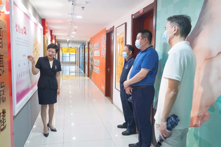08月13日,濟南市千佛山街道辦事處黨建辦公室副主任趙孔希帶領轄區企業海大醫院的代表走進大智。