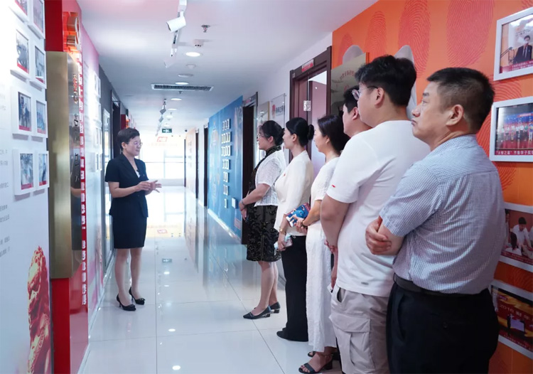 大智控股集團黨委書記王現(xiàn)芹帶領(lǐng)大家參觀了大智黨群陣地,詳細(xì)介紹了大智“智惠黨建一三九”工作模式以及黨建引領(lǐng)下的大智 “一帶一促”群團建設(shè)理念和“智惠+”群團建設(shè)模式。
