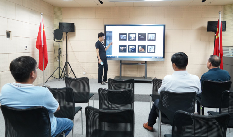 大智控股集團黨委書記王現芹帶領大家參觀了大智黨群陣地,詳細介紹了大智“智惠黨建一三九”工作模式以及黨建引領下的大智“智惠+”群團建設模式,著重分享了大智抓黨建的經驗方法。
