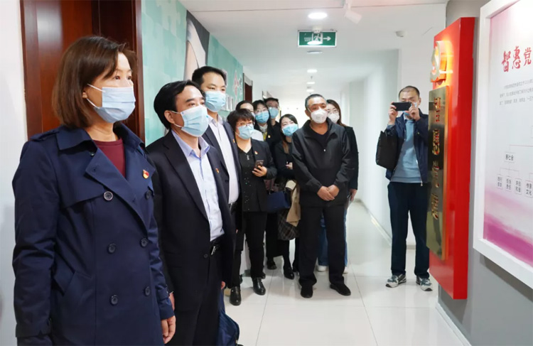 大智控股集團黨委書記王現芹帶領大家參觀了大智黨群陣地,詳細介紹了大智“智惠黨建一三九”工作模式以及黨建引領下的大智 “一帶一促”群團建設理念和“智惠+”群團建設模式。