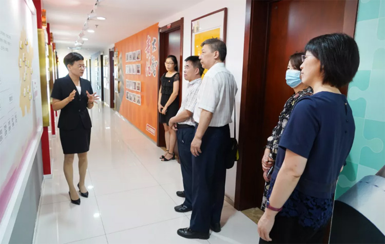 07月14日,濟南市稅務局機關黨委副書記宋凱軍,機關服務中心副主任王長恒一行在濟南市婦聯組聯部副部長吳敬文,歷下區婦聯副主席張芳陪同下,蒞臨大智調研婦建工作。
