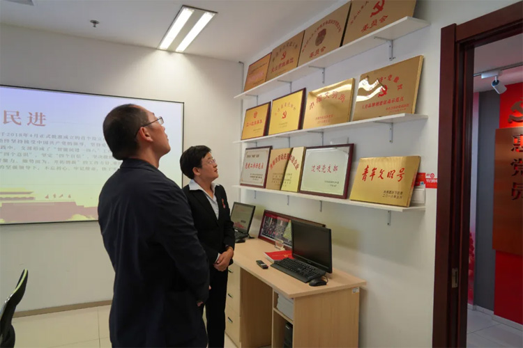 在集團黨委書記王現芹的帶領下,紀宏偉一行首先參觀了大智黨建長廊、大智黨校。隨后聽取了王現芹就集團黨委統戰相關工作的匯報。
