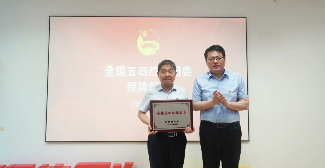 團省委副書記張守珩為大智控股集團團委頒發“全國五四紅旗團委”獎牌。