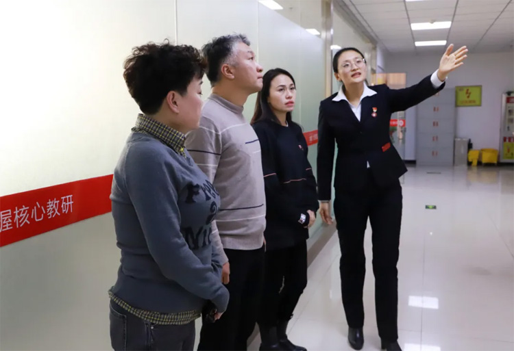 隨后,于翠平同志帶領大家參觀分校,主要圍繞辦學理念、課堂模式、課程研發、師資培訓以及教學質量展開介紹。大家對大智在教育教學方面的探索和成果給予了積極肯定。