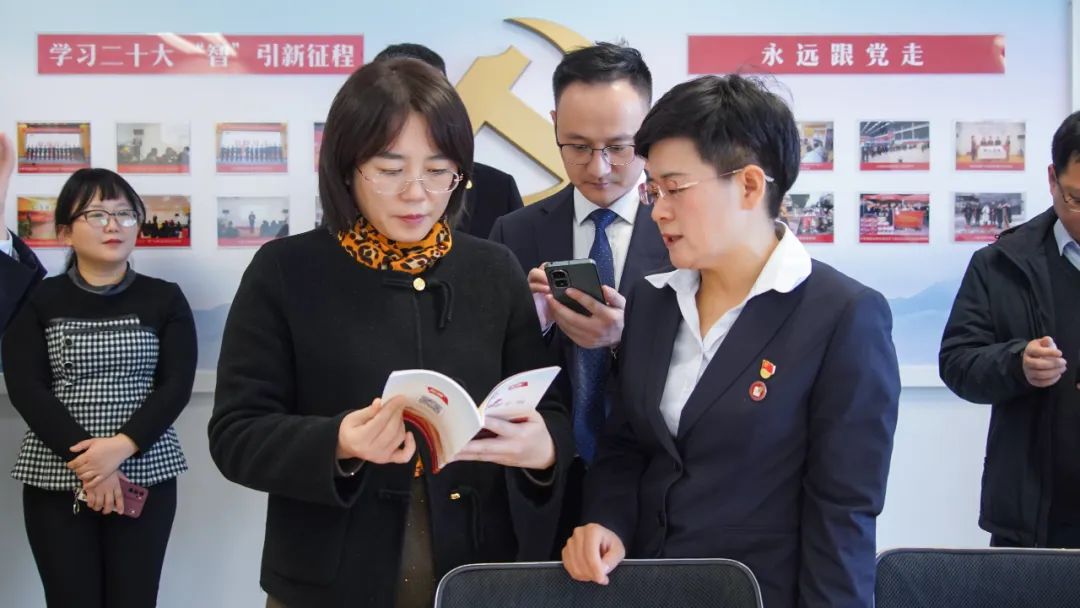 王現芹帶領大家參觀了黨建長廊,詳細介紹了大智黨團組織架構、企業文化等相關情況,以及“智惠黨建一三九”黨建工作模式,黨建引領下的“一帶一促”群團建設理念和“智惠+”群團建設模式。大家對大智的黨團工作給予了高度評價。